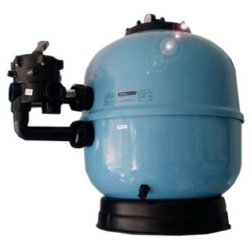 Corpo feito de resina de poliéster reforçado com fibra de vidro com acabamento em gelcoat azul no exterior.