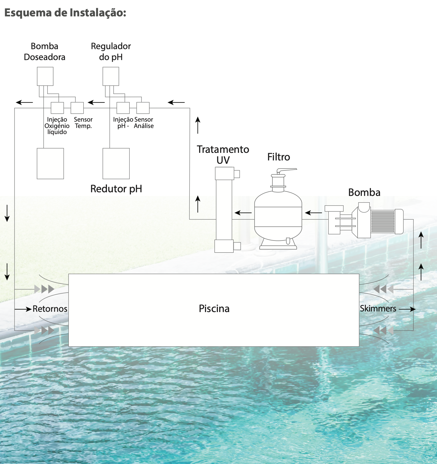 Sistema automático, sem cloro, otimizado com lâmpadas UV-C das últimas tecnologias de desempenho de alta intensidade (HO) para assegurar a desinfeção contínua da água da piscina e do spa.