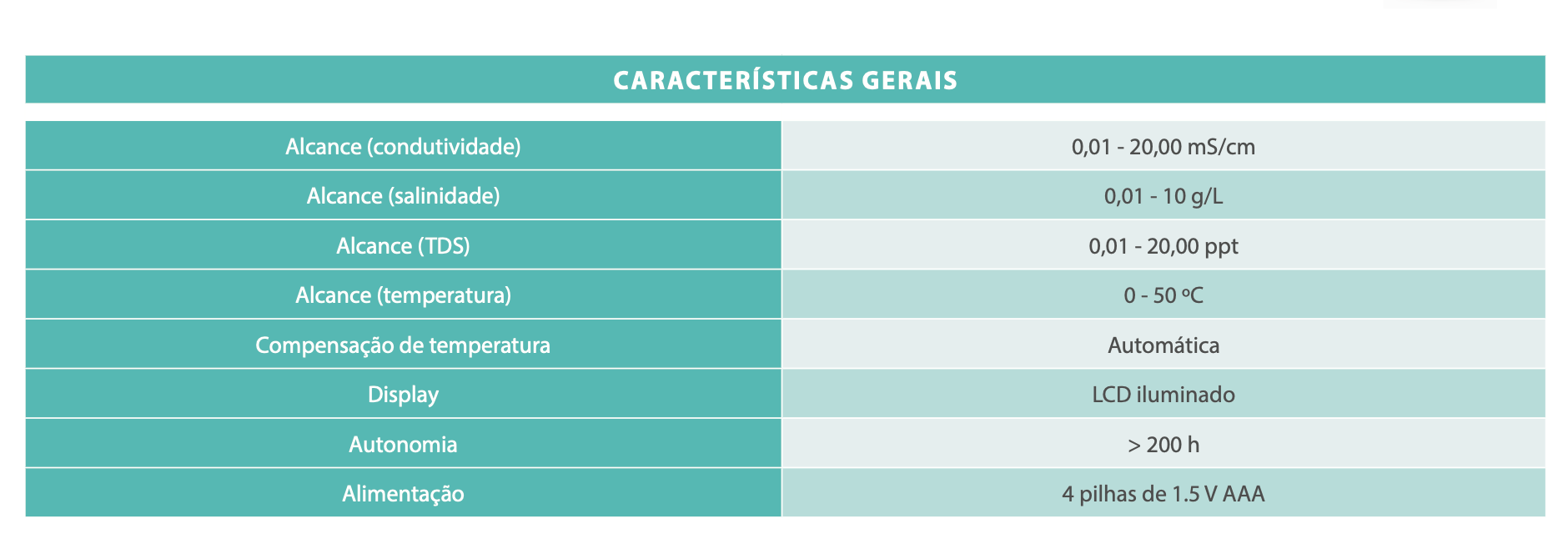 - Analisa diretamente o nível de sal na água em vez de realizar aproximações potencialmente erradas.