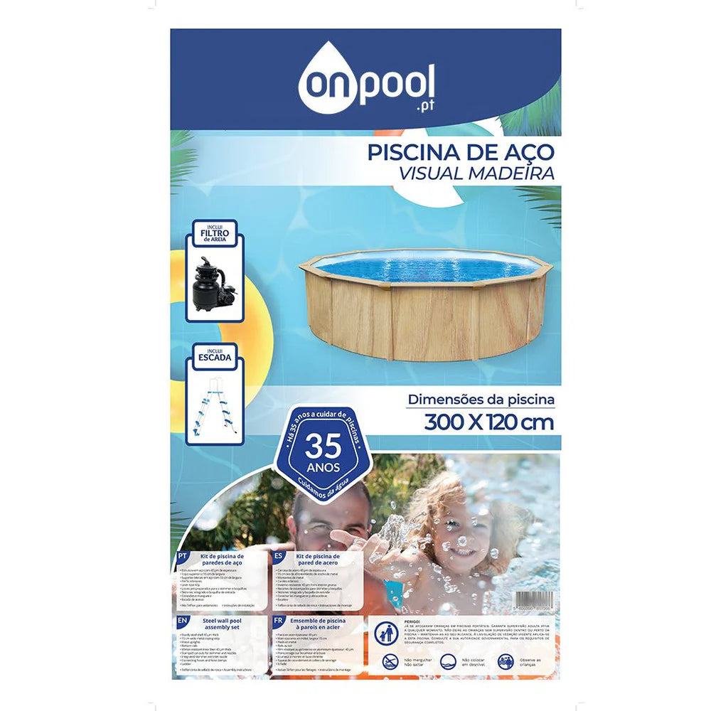 Piscina de aço redonda visual madeira ø3,00 x 1,20 m