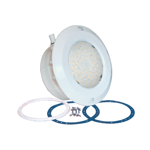 Inclui: Lâmpada LED 12 VAC, cabo com 1,2 m de comprimento de 2 x 0,75 mm2, nicho, parafusos em aço inoxidável e juntas para flange.